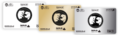 Sofern Sie die Karte nicht schon besitzen, erhalten Sie ab einer Anlagesumme von 100.000 Euro eine Kundenkarte sowie ein Bronze-Muster der boerse.de-Goldmünze. Sie nehmen dann automatisch am jährlichen boerse.de-Gewinnspiel teil (Hauptgewinn eine Reise zur Wall Street) und erhalten eine Geburtstags-Überraschung!